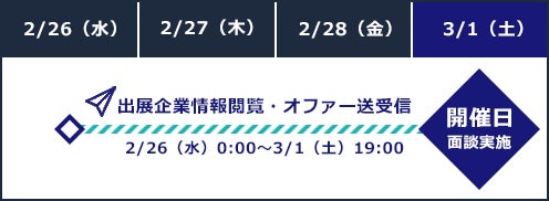 ※出展企業情報の閲覧・カジュアル面談オファーの送受信:2/26(水)~3/1(土)