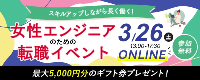 女性エンジニアのための転職イベント ONLINE』を開催いたします(https://woman-type.jp/s/event/online-engineer/?waad=EyUjNx9h)