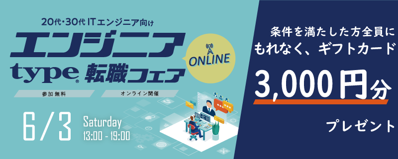 ●2023年6月3日(土)『type エンジニア転職フェア ONLINE』の詳細はこちら!