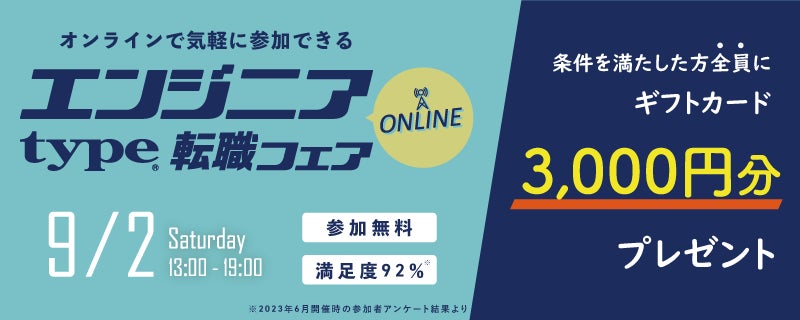 ●2023年9月2日(土)『type エンジニア転職フェア ONLINE』の詳細はこちら!