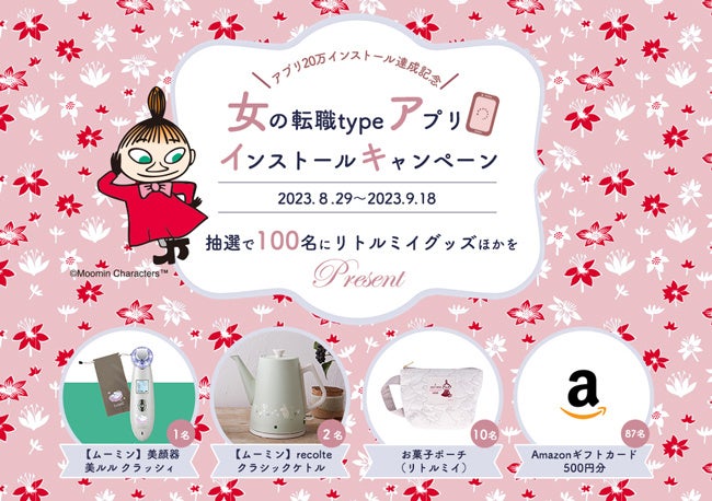 「女の転職type」が、リトルミイグッズ・Amazonギフトカードが当たるアプリインストールキャンペーン第三弾を開催!