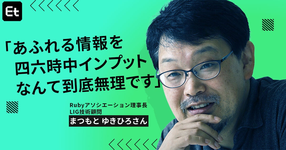 「エンジニアは一生勉強」とはいうものの、情報が溢れかえる今「インプットが追いつかない!」と焦るエンジニアも多いだろう。しかしRuby開発者である、まつもとゆきひろさんは「心配しすぎることはない」と話す。膨大な情報から自分に必要な情報や技術をどう見極めればいいのだろうか。まつもとさんのインプット方法と合わせて話を聞いた。